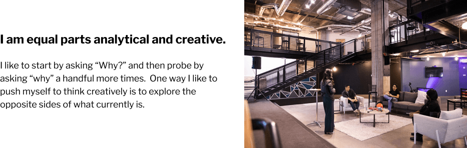 The process of building technology informed by a deep understanding of human needs excites me. I enjoy helping people harness the power of technology to unlock boundaries and amplify creativity.