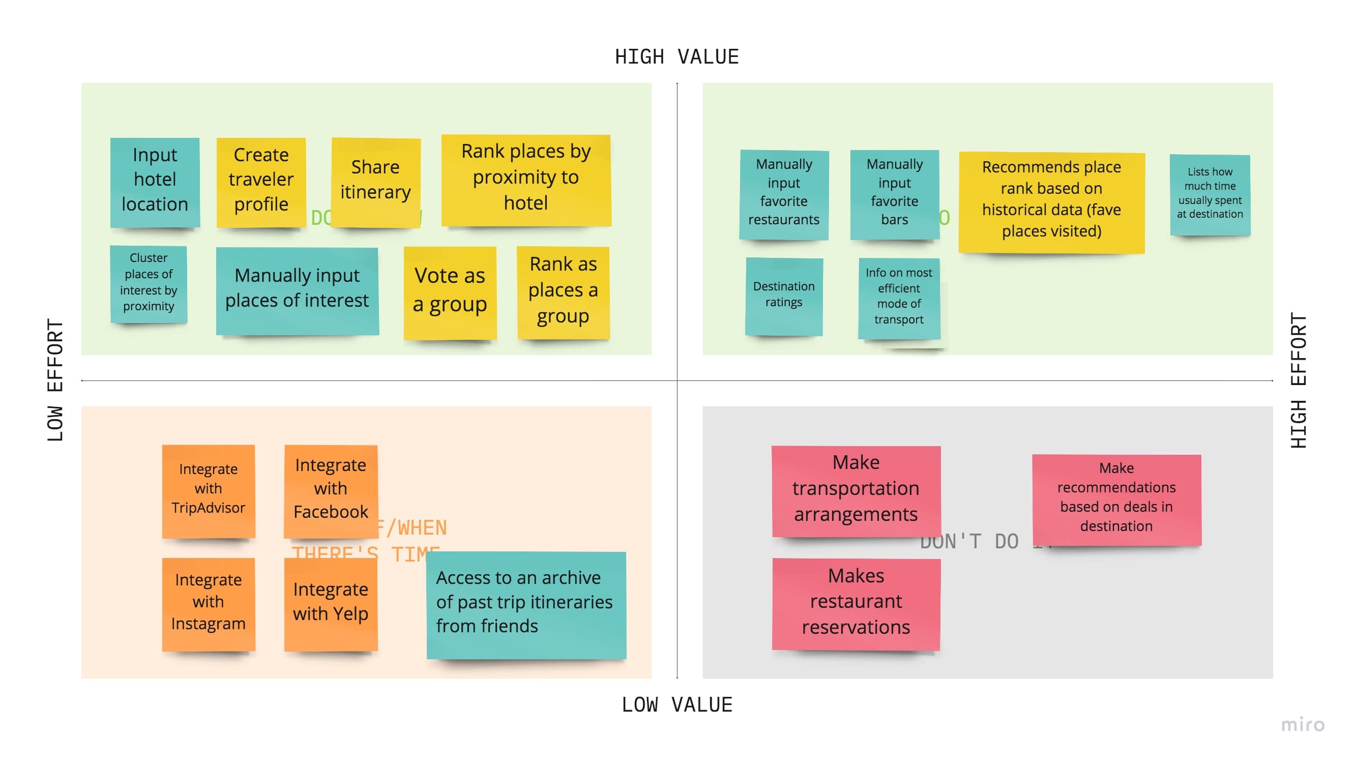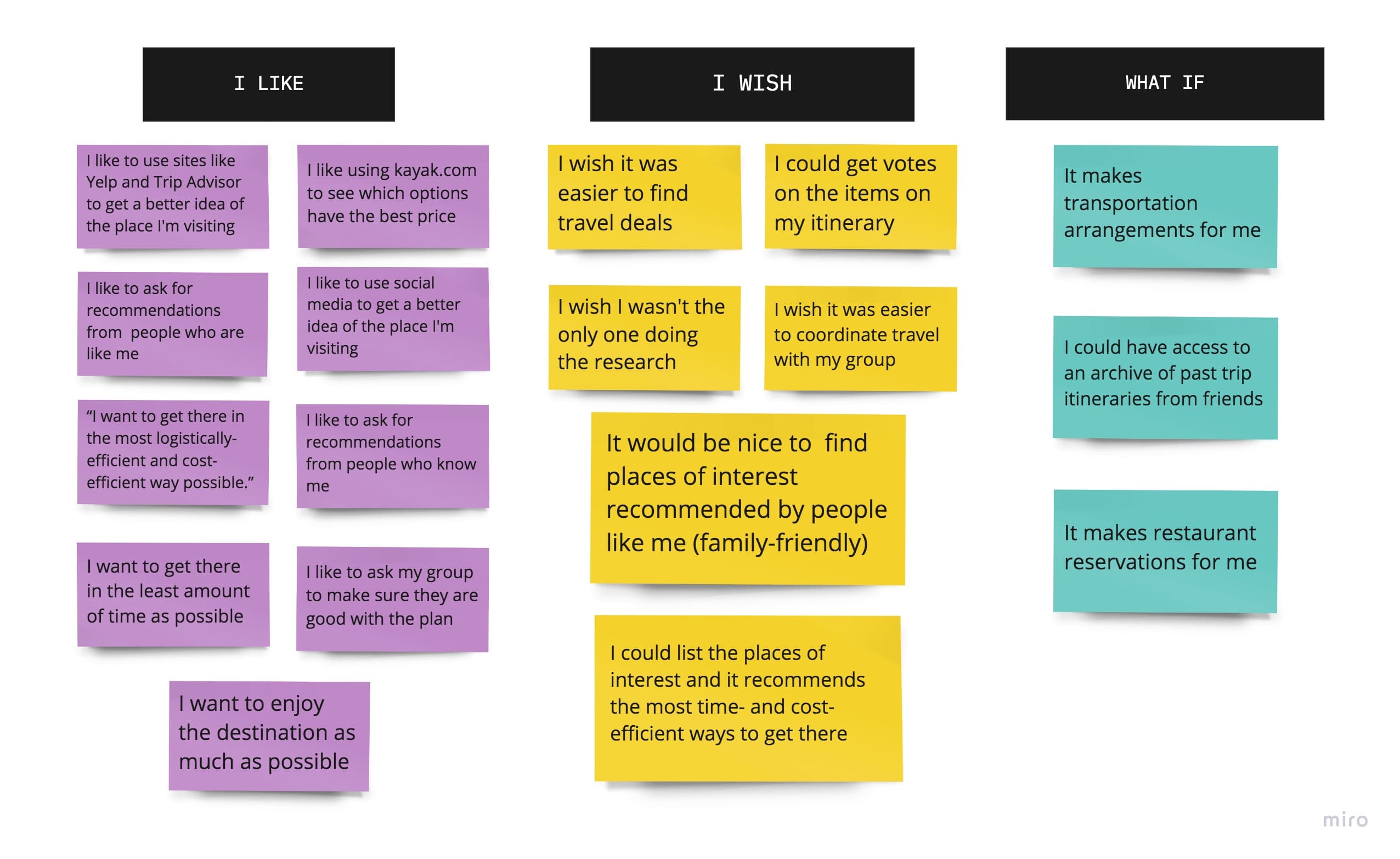 After re-reading interview transcripts, I made a pivot in the problem I wanted to solve: from booking price transparency issue to group travel itinerary issue.
