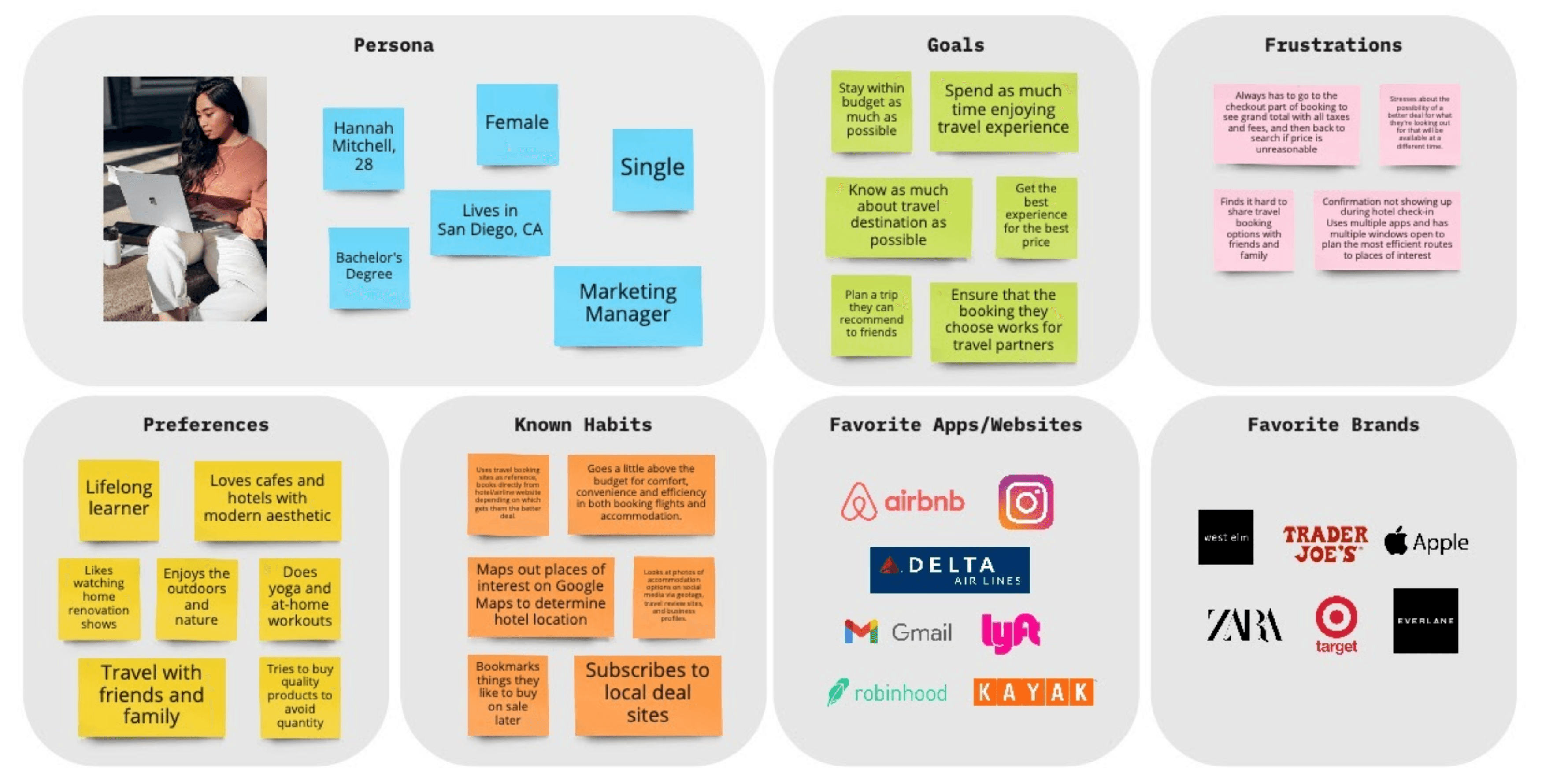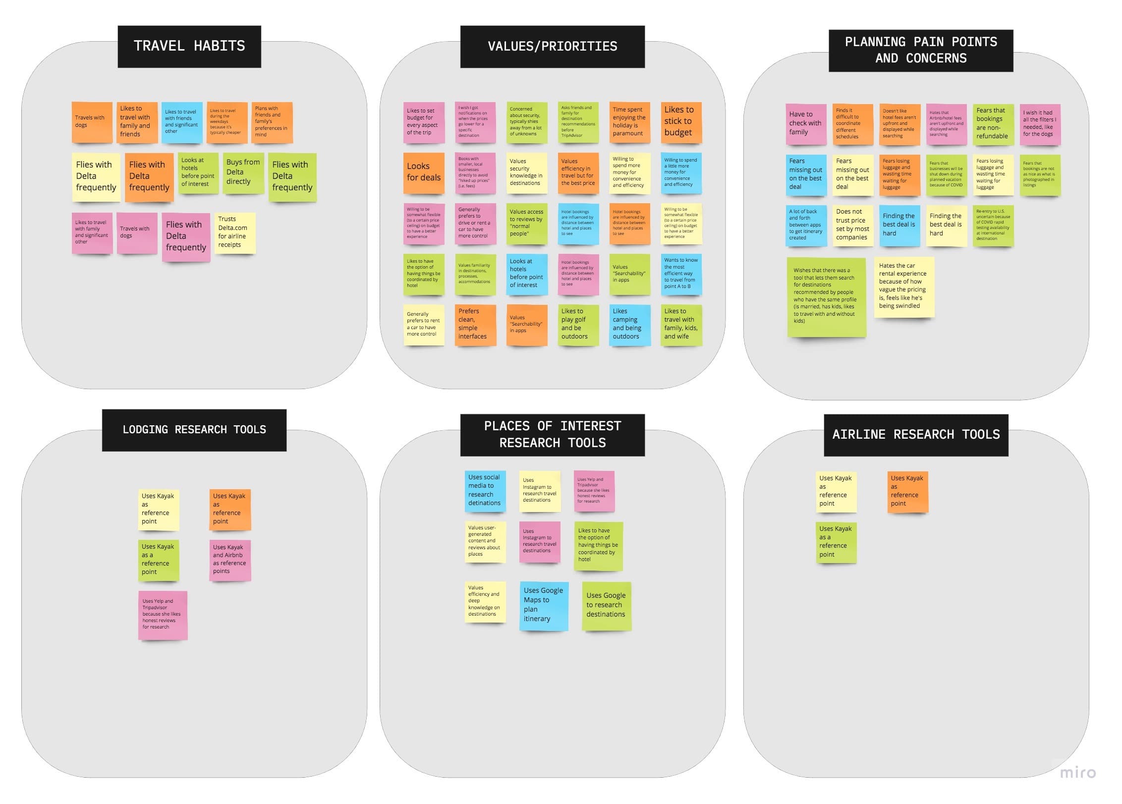 After re-reading interview transcripts and data, I made a pivot in the problem I wanted to solve: from booking price transparency issue to solving for a group travel planning issue. It was challenging to re-do the affinity diagram, empathy map, user persona was with such a restrictive timeline.