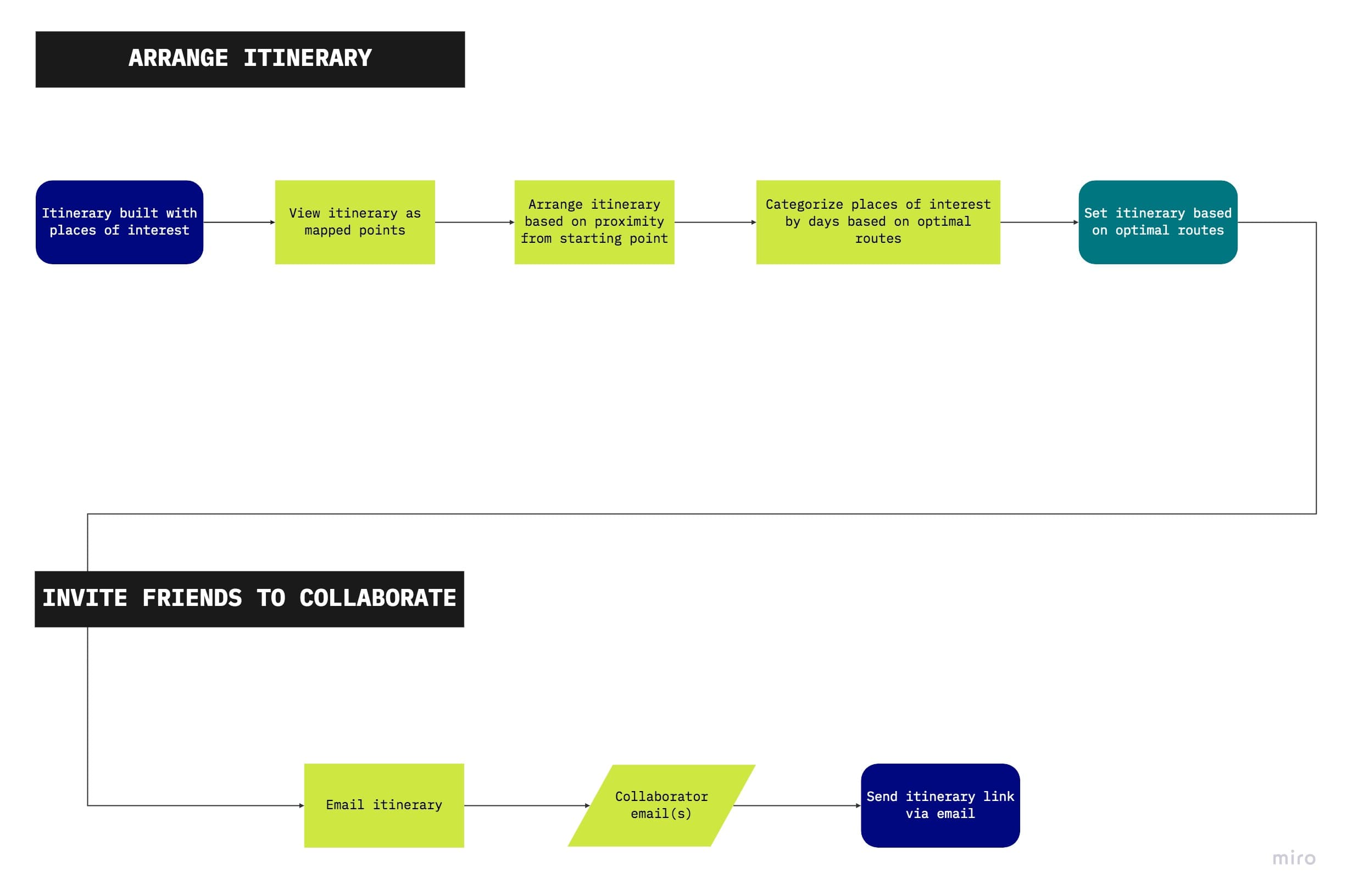 We believe that it would be helpful for travelers to have a streamlined way to create custom itineraries, filled with network-recommended places of interest that their group can agree on. We might do this by creating an app that lets travelers share their itinerary filled with network-recommended places of interest within their lodging location’s proximity. This way, the traveler and their group can make harmonious decisions on the places of interest they’ll be visiting at specific times. Having this will allow travelers to feel like they have better control over the time they have at the destination.