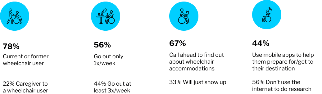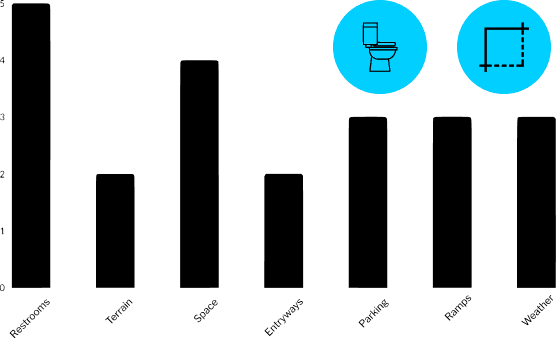 People on wheelchairs experience accessibility issues when trying to navigate a public place. Often, they have to call a place of interest ahead to ensure that their accessibility needs are accommodated, i.e. parking spaces, doorways, ramps, seating.