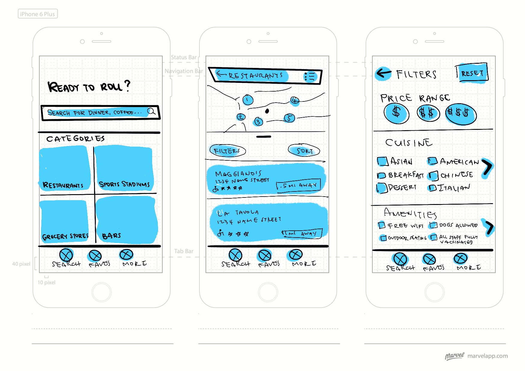 As a group, we each sketched our own screens to get a more intimate idea on what the layouts and elements will look like before going digital. We reviewed our sketches altogether and curated the best representation of our flow and features from the collection.